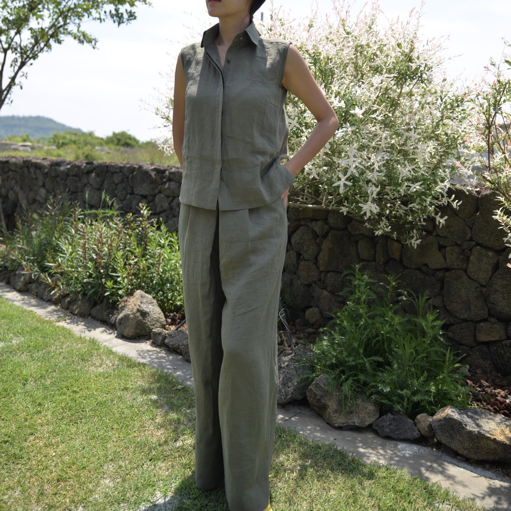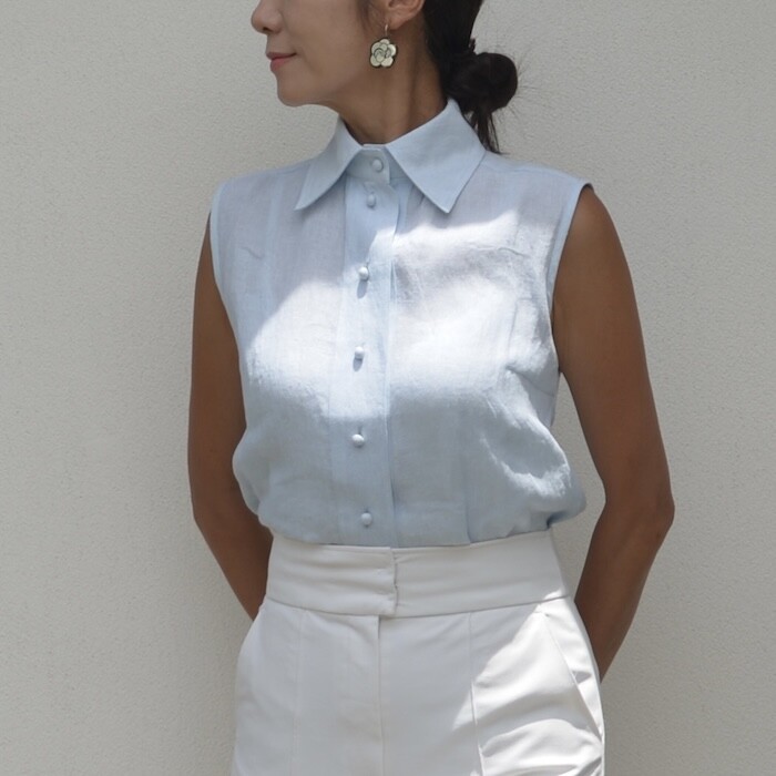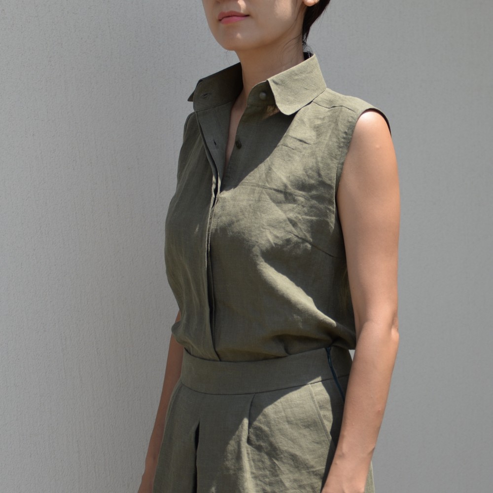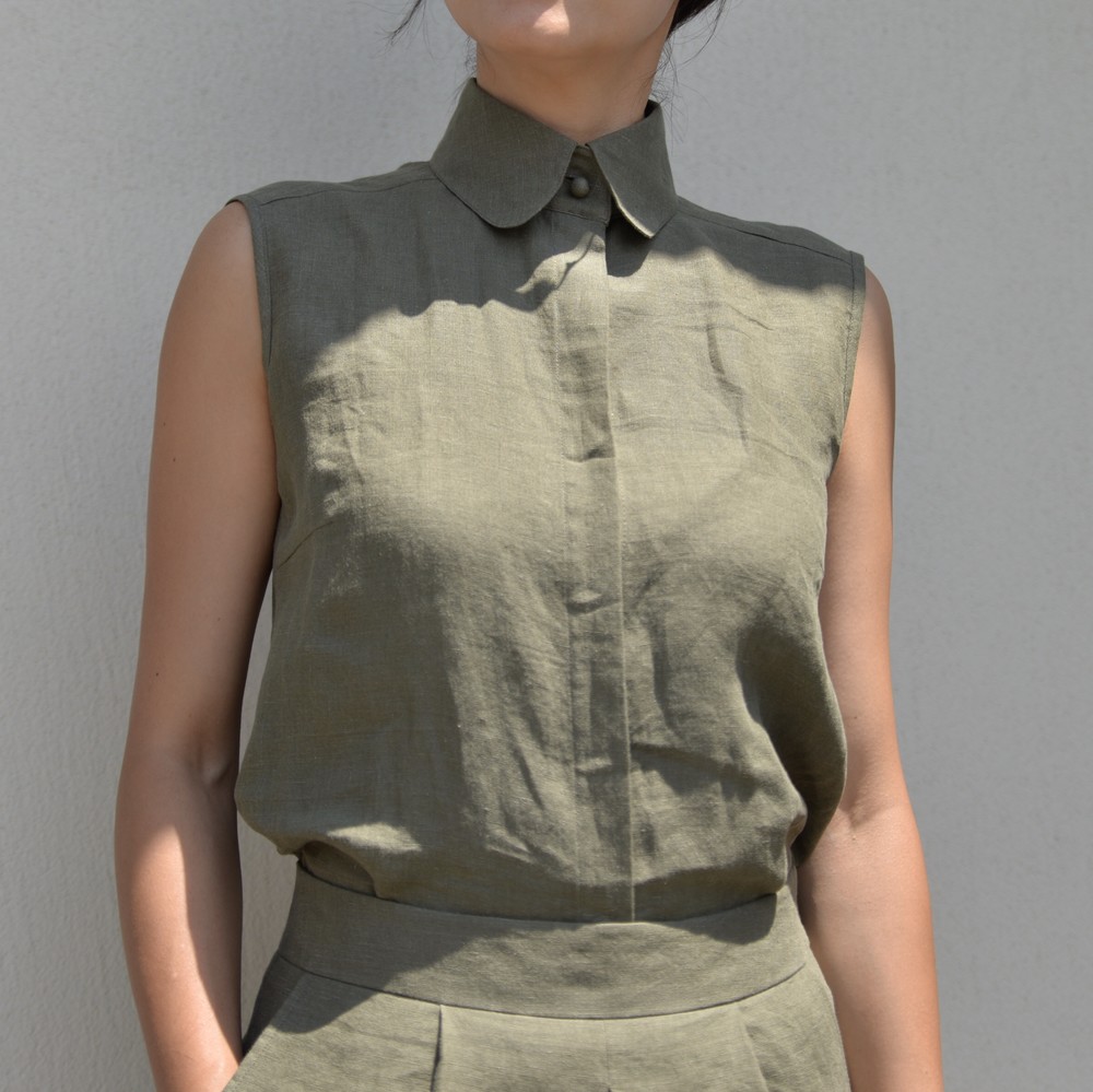 Basic Sleeveless Linen Shirt
