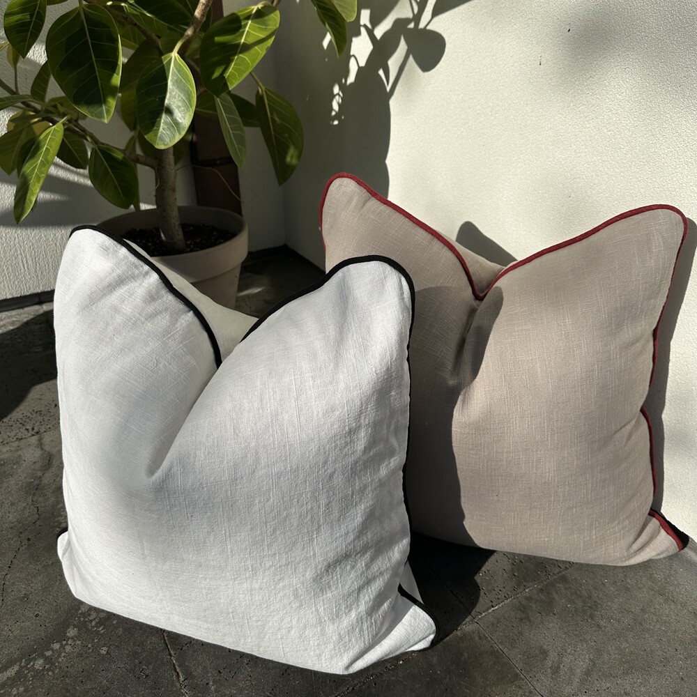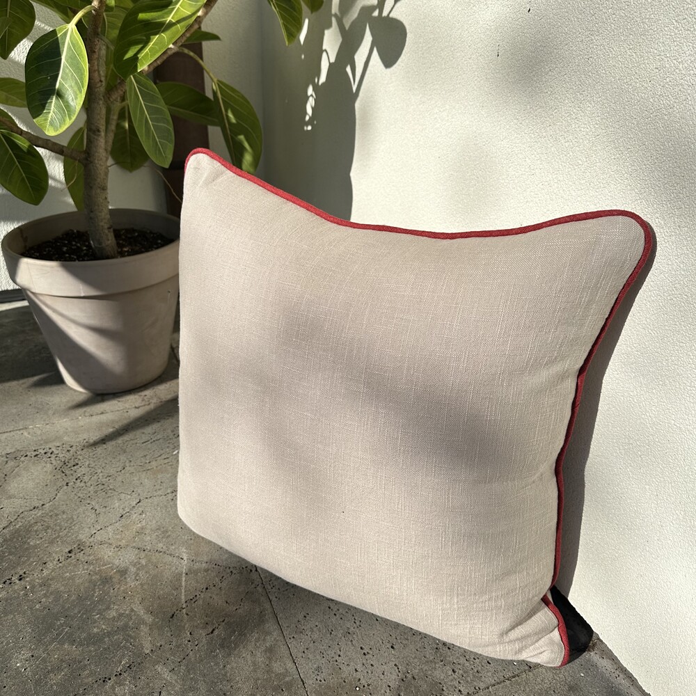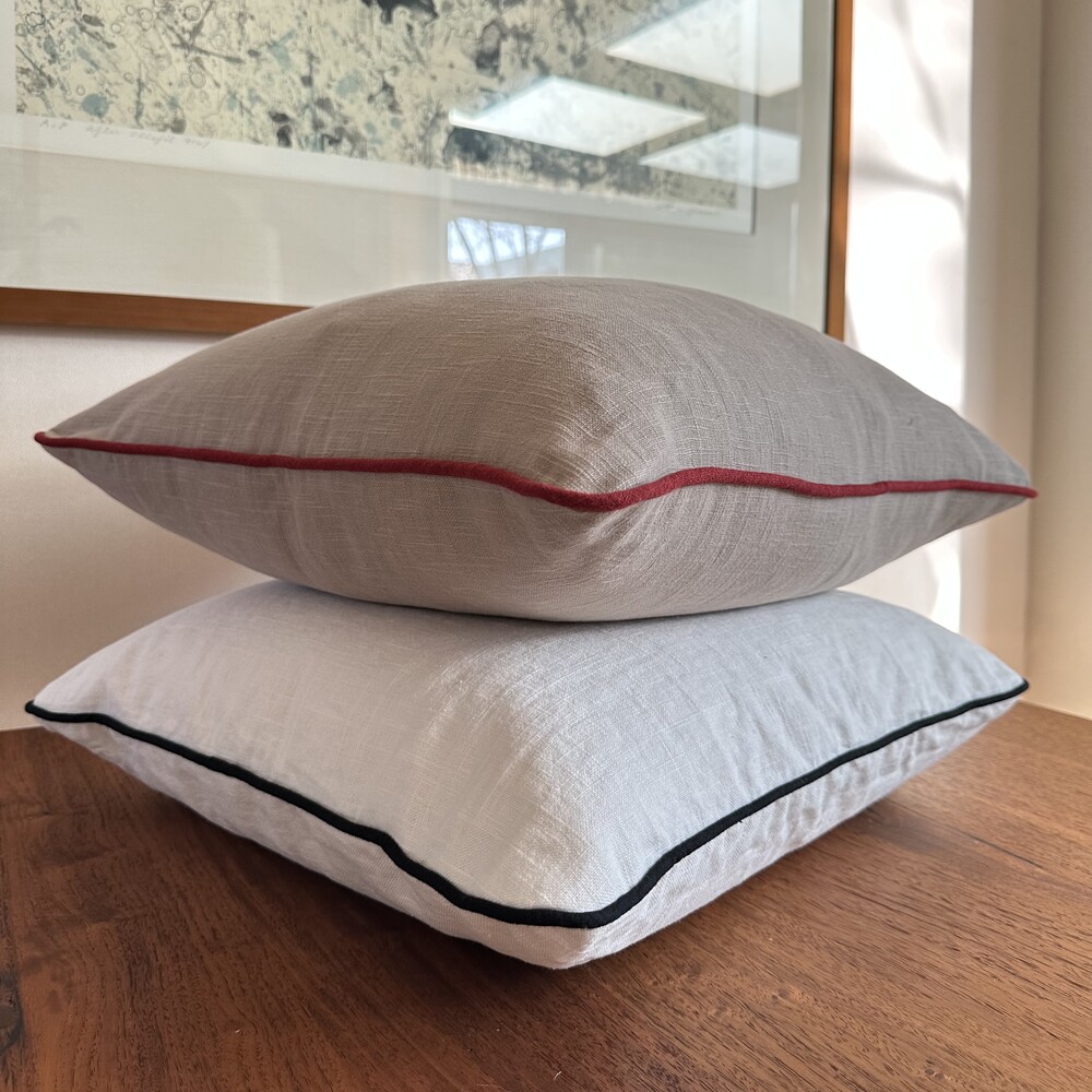 커튼도 만드는 같은 두께감의 린넨입니다. 린넨으로 파이핑 되어 있습니다.