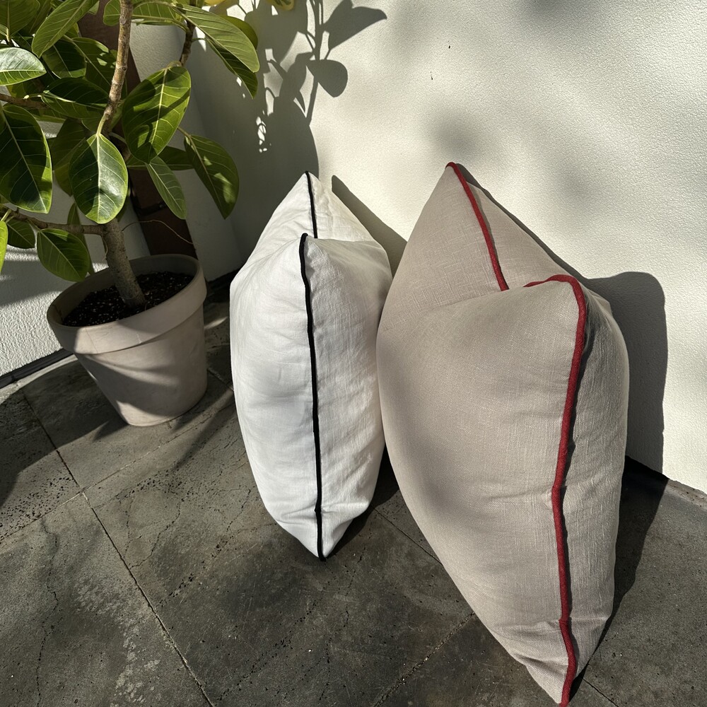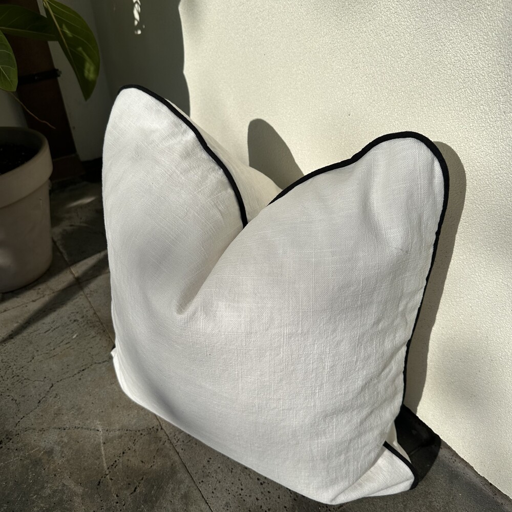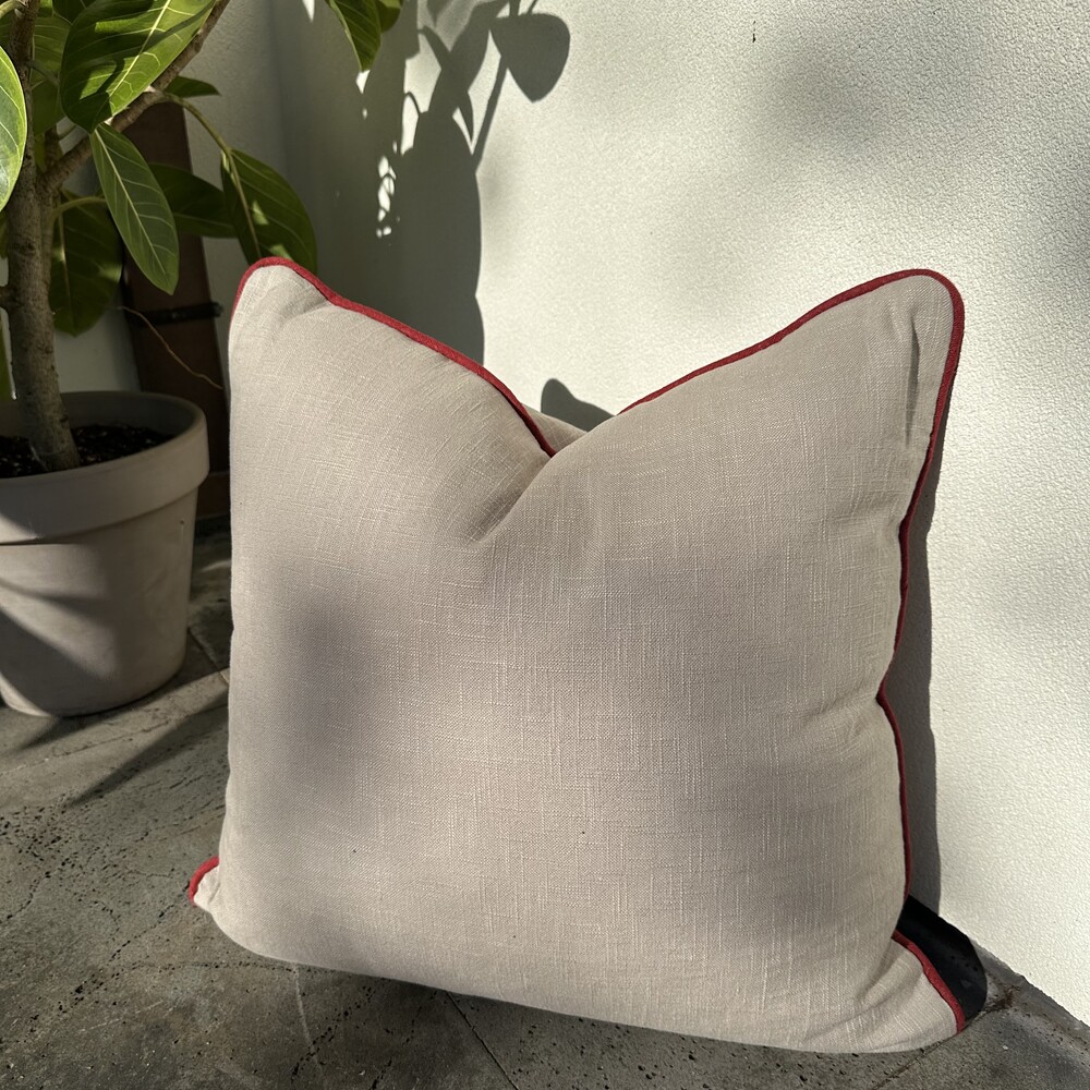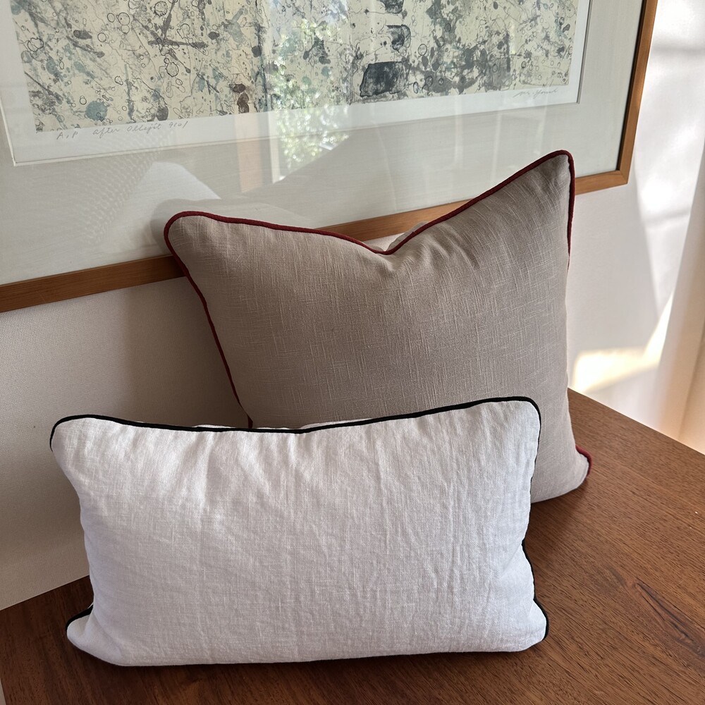 커튼도 만드는 같은 두께감의 린넨입니다. 린넨으로 파이핑 되어 있습니다.