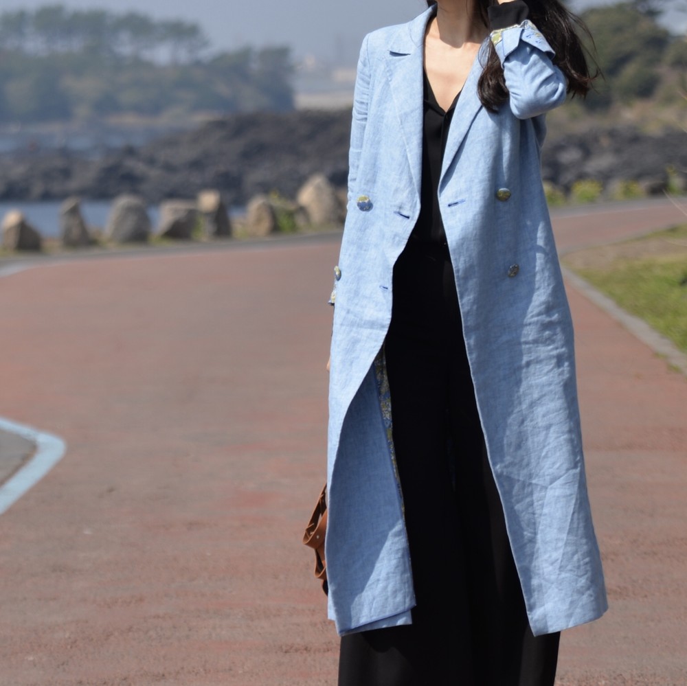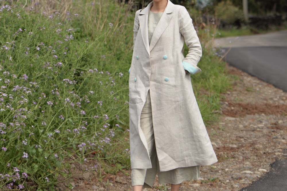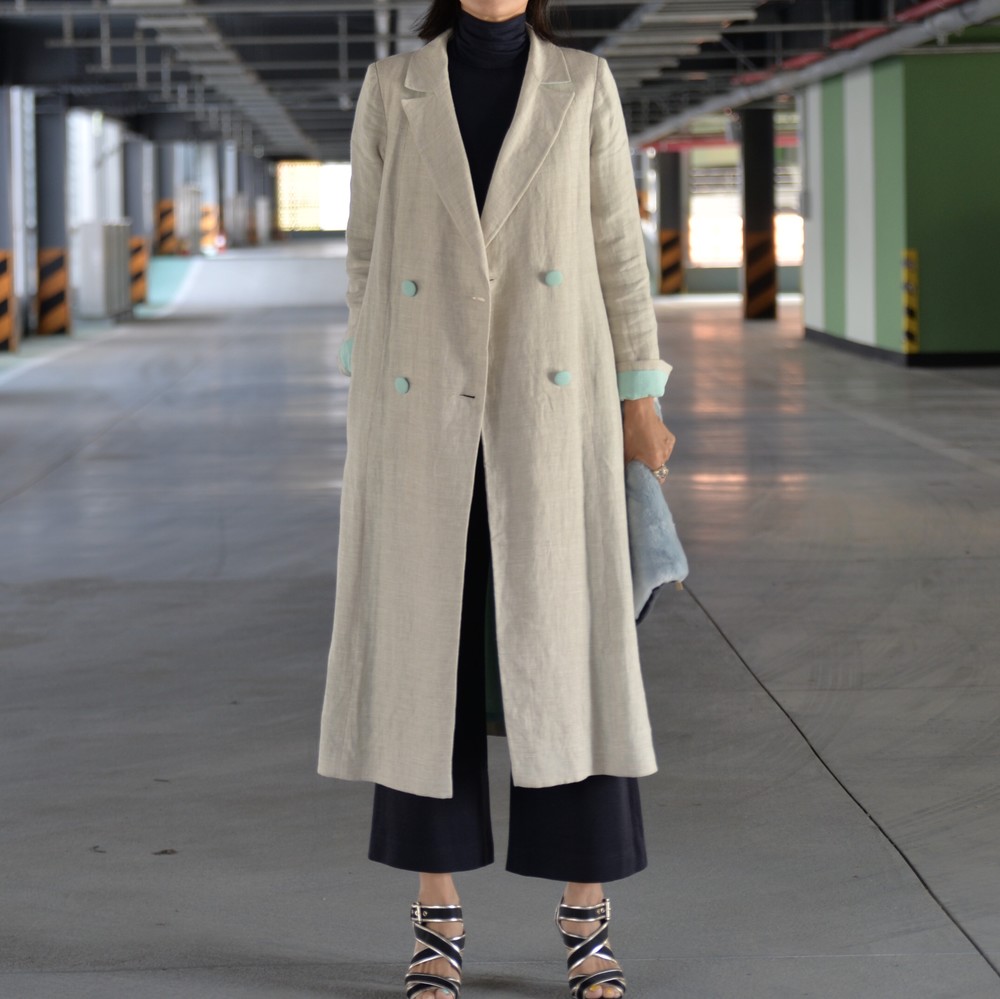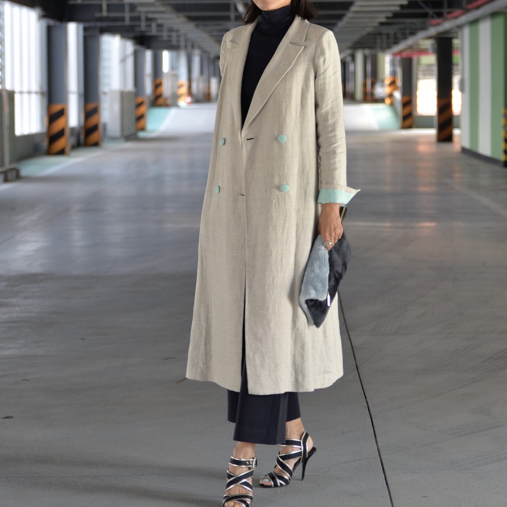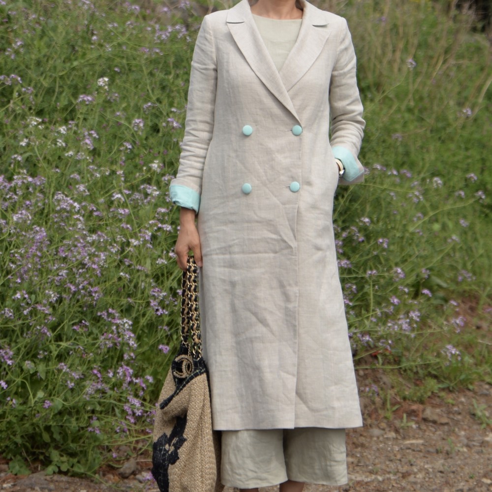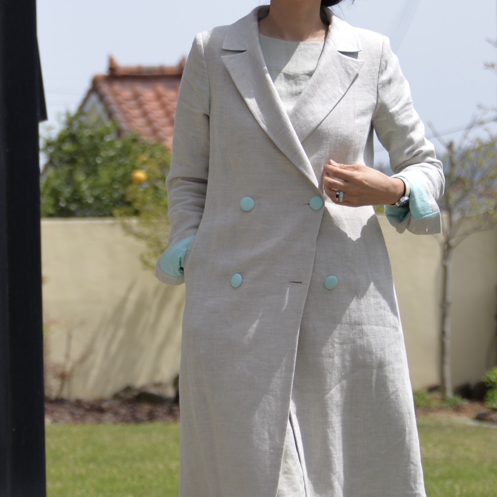 클래식한 더블브레스트 린넨 코트입니다.