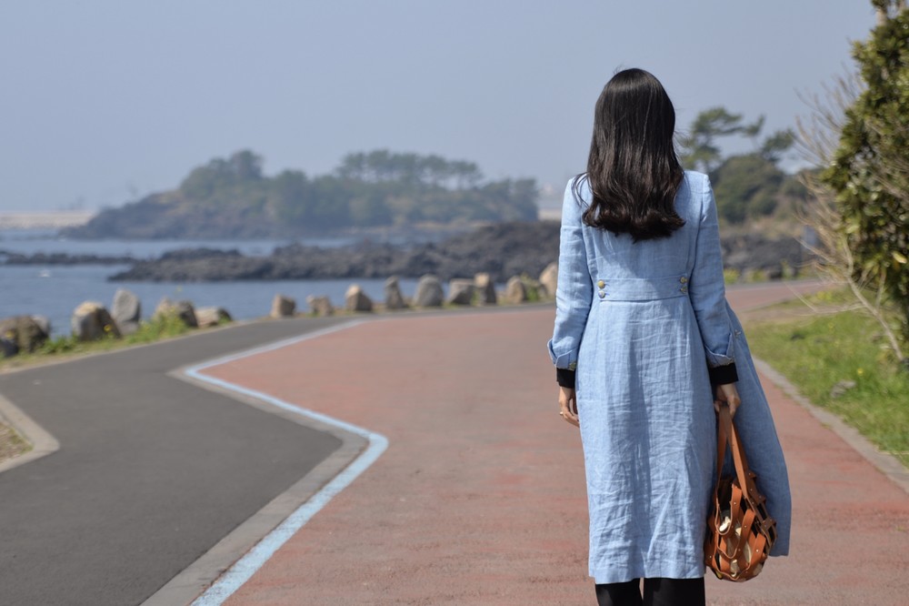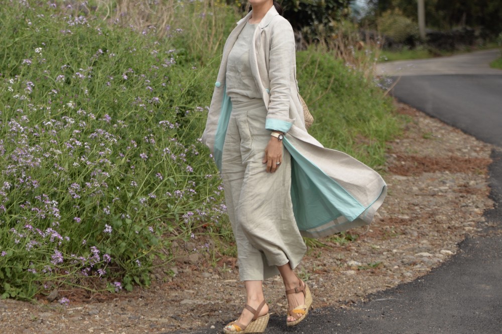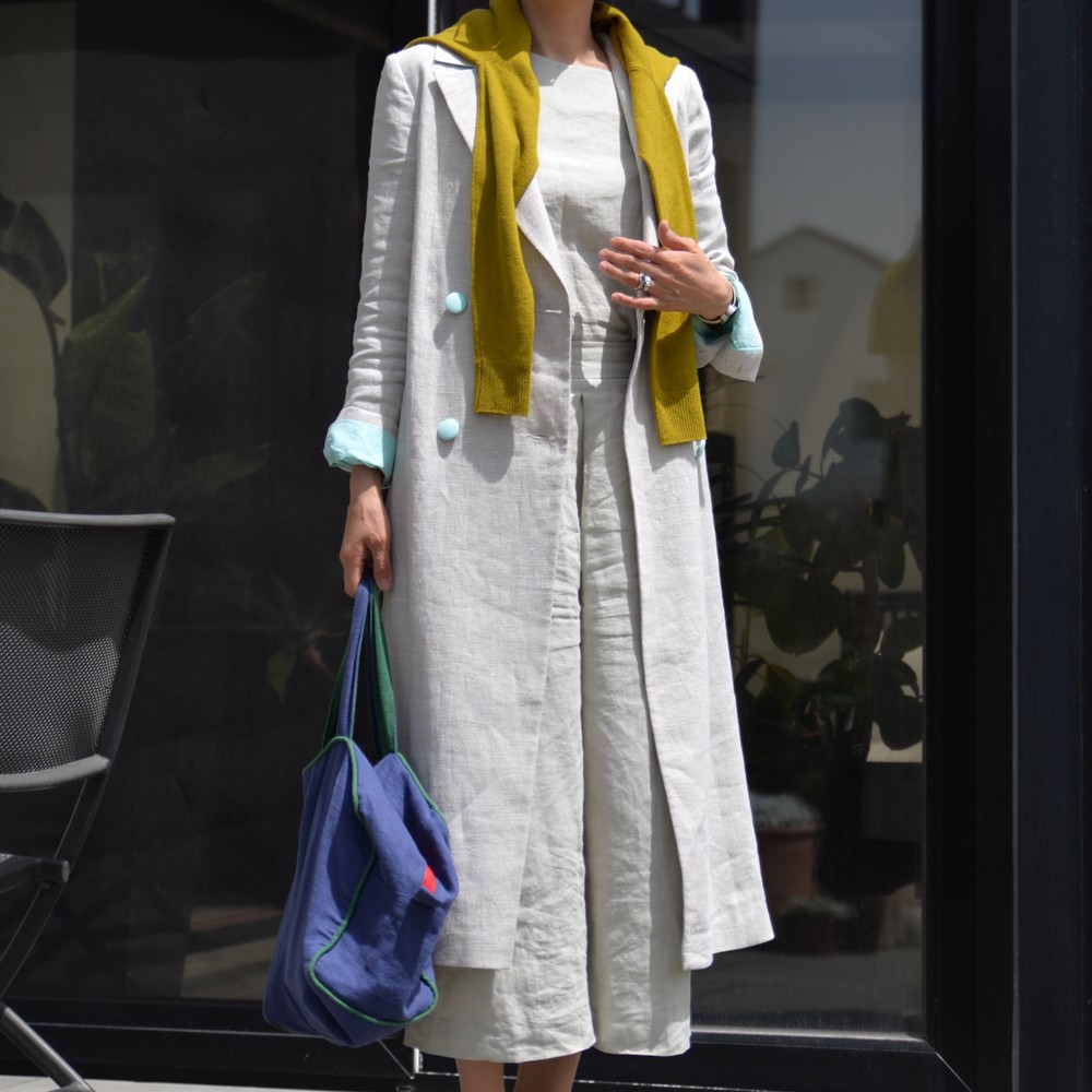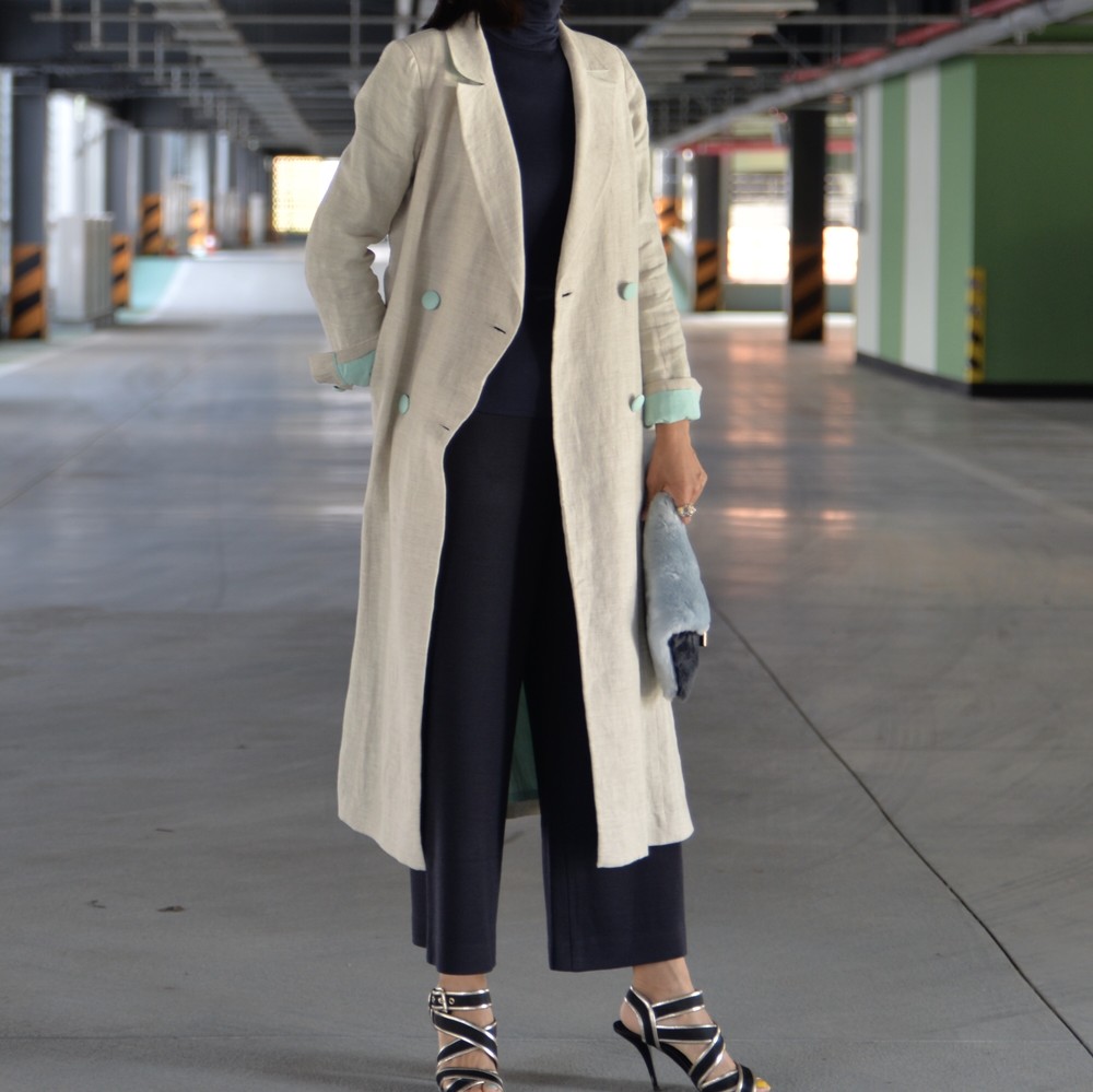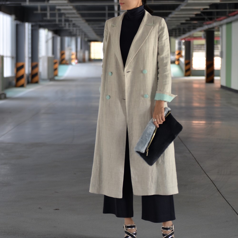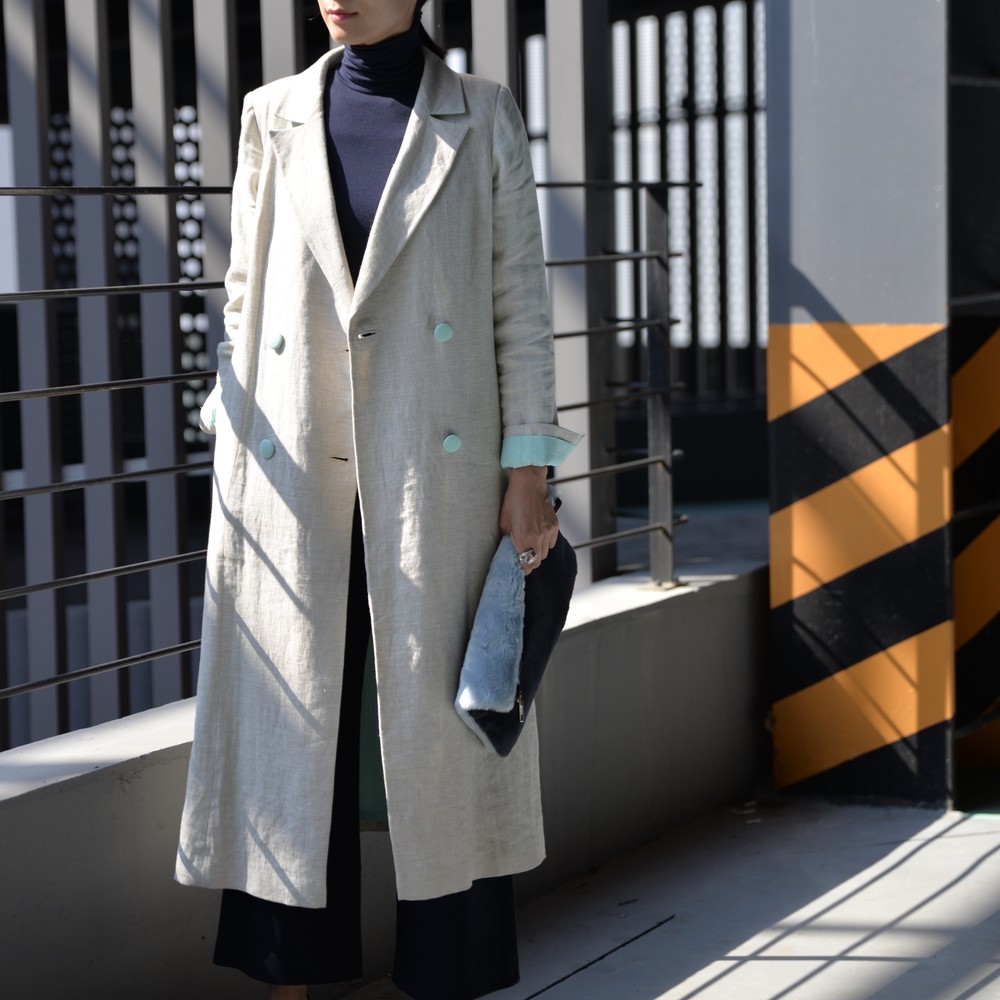 클래식한 더블브레스트 린넨 코트입니다.