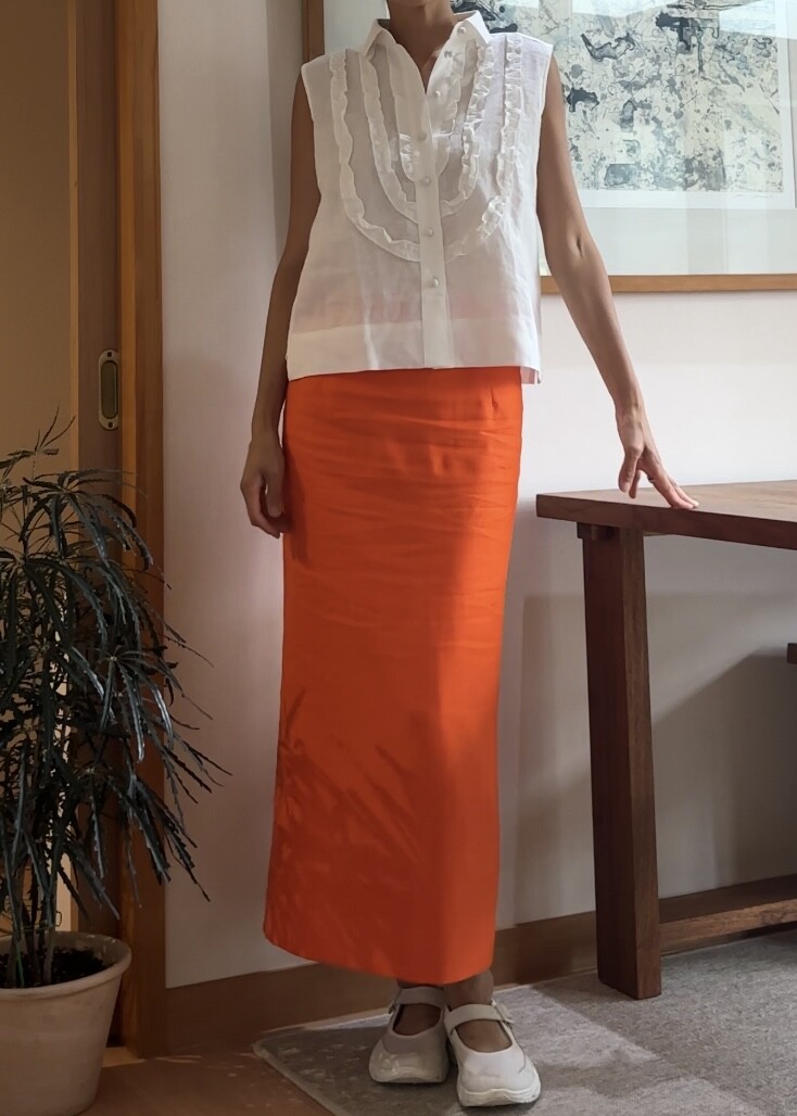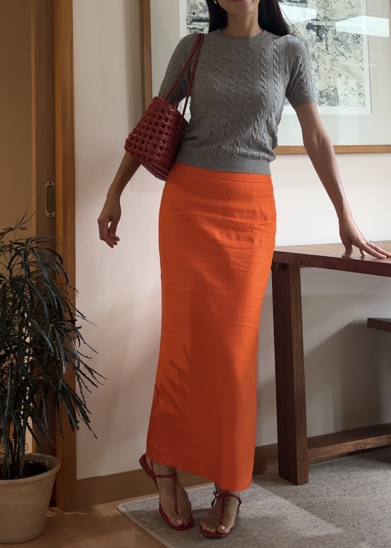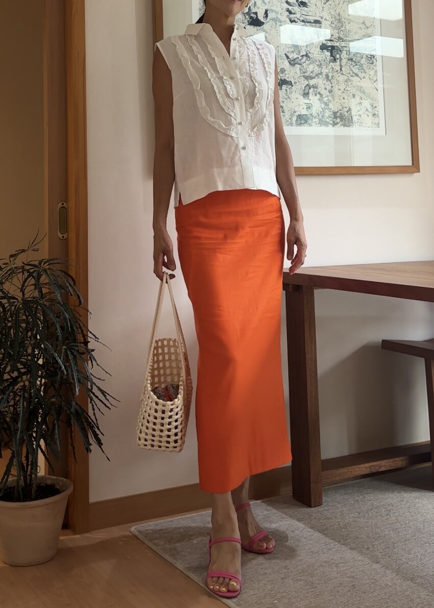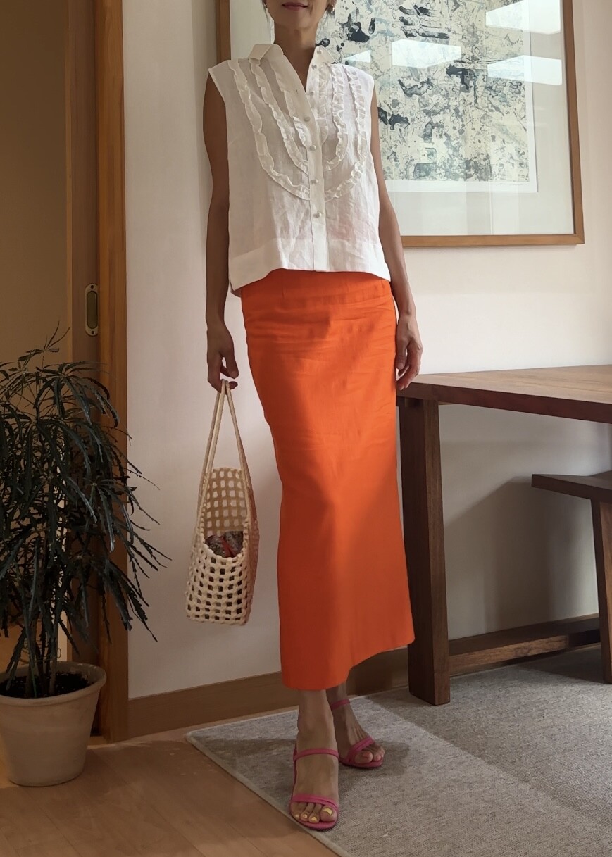 H-Line Linen Skirt - Orange