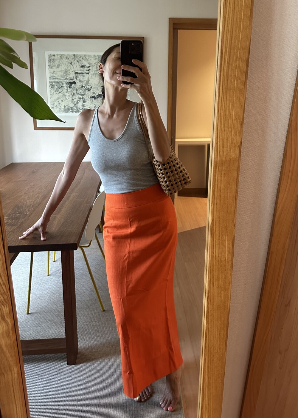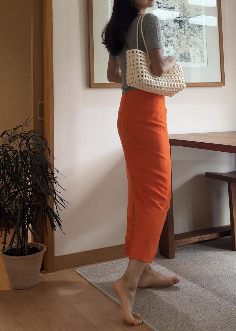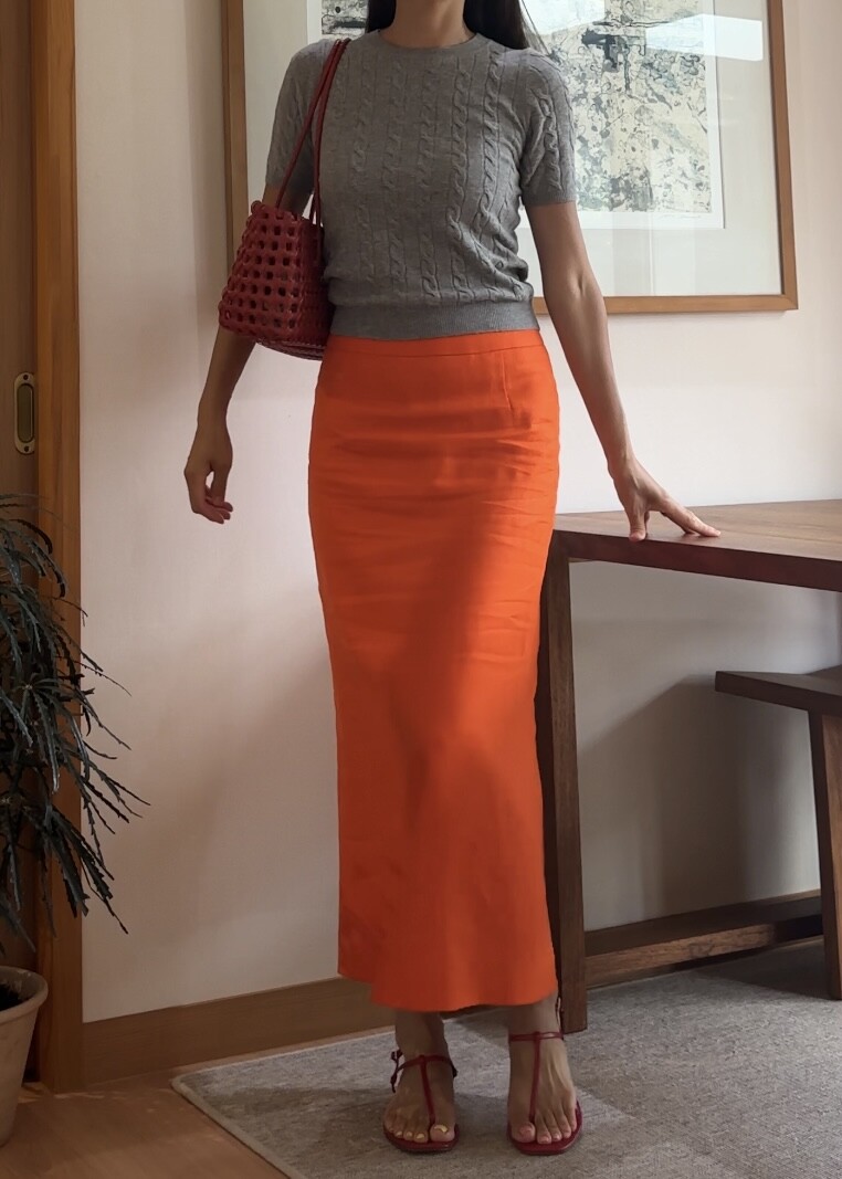H-Line Linen Skirt - Orange