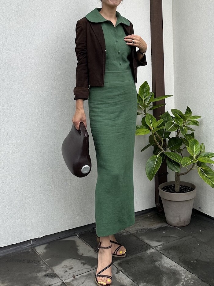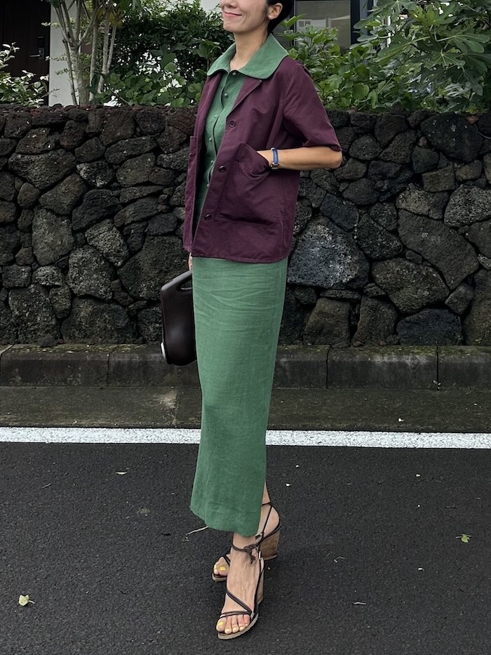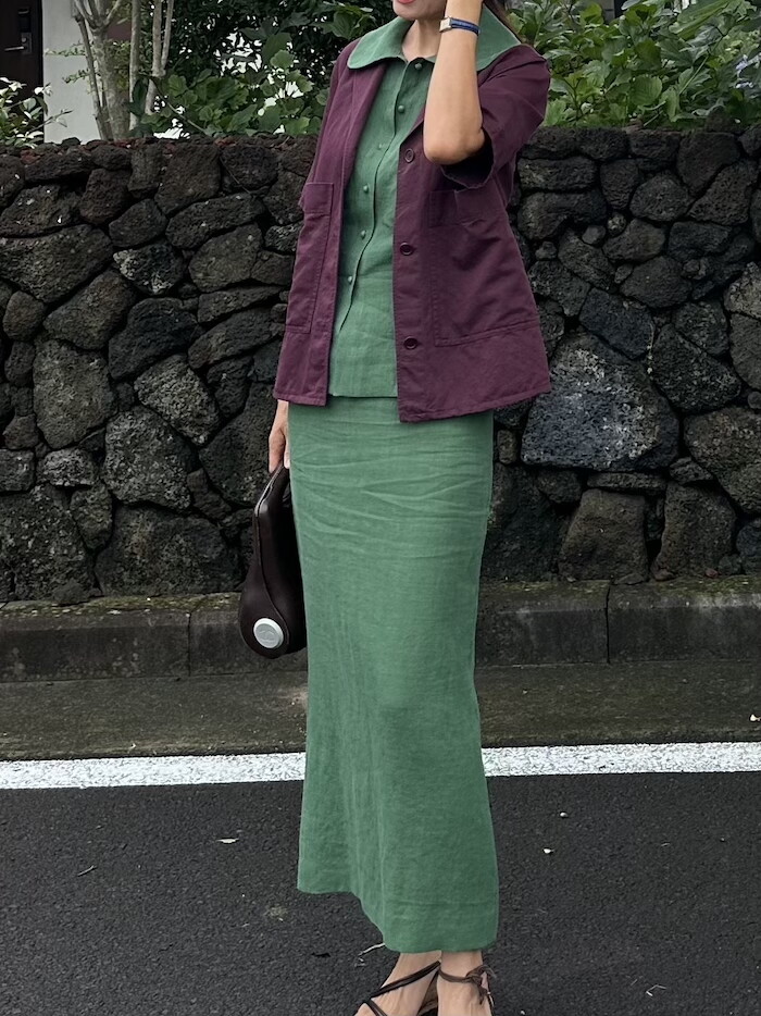 둥근 허리선 디자인으로 밑에 까지 H 라인으로 툭 떨어지는 스타일입니다.