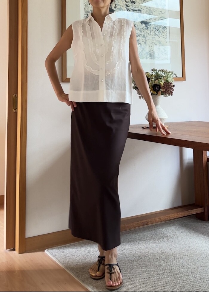 꽉 맞게 입지 않아도 날씬해 보이는 패턴으로 배와 힢 라인을 살짝 여유 있게 만들어 드립니다.