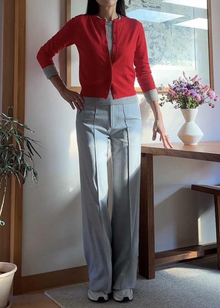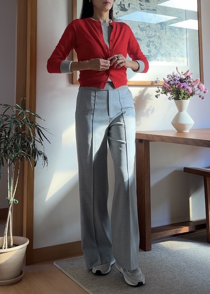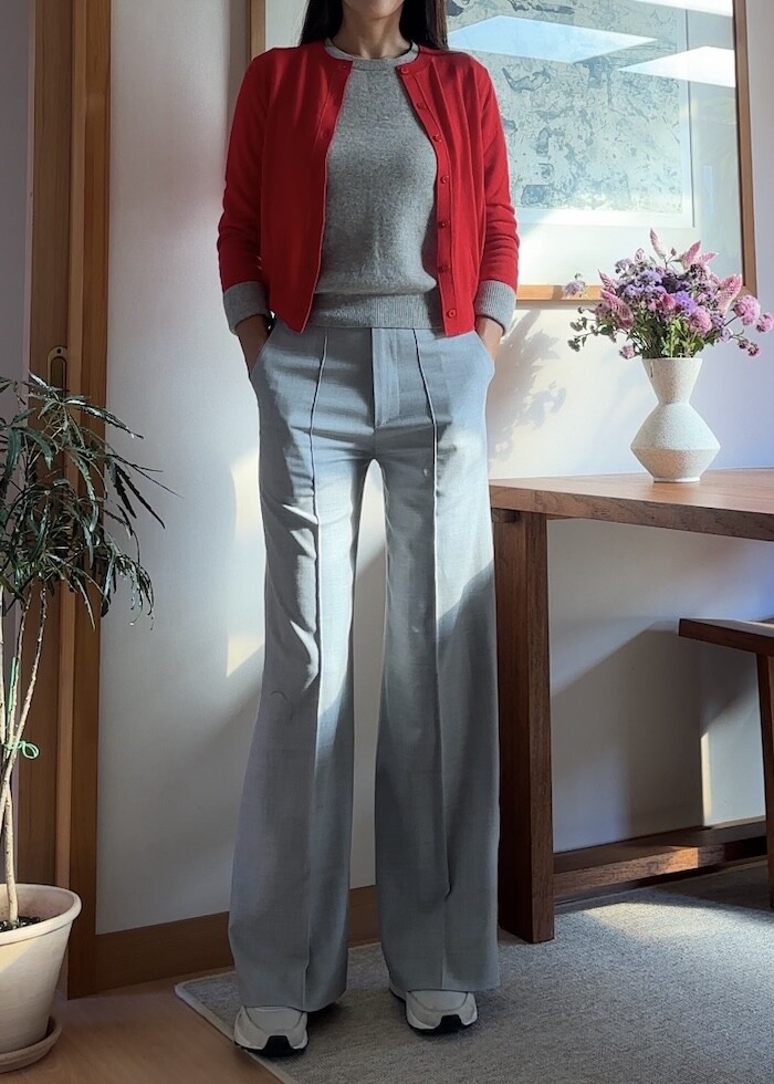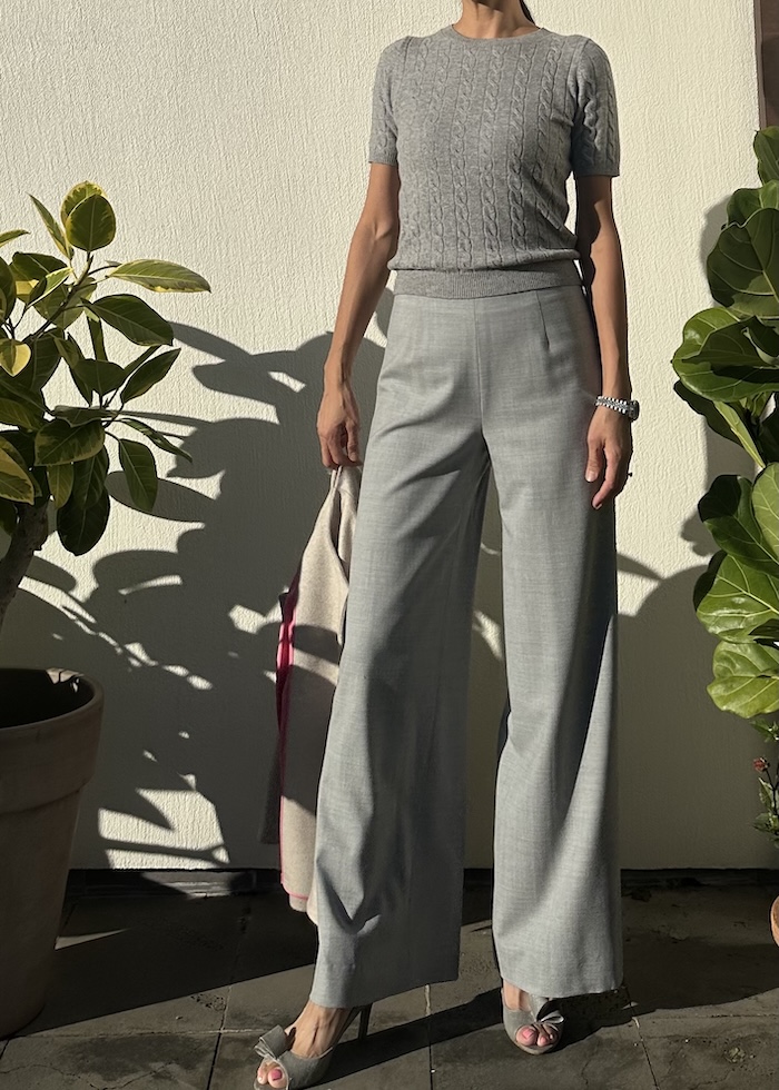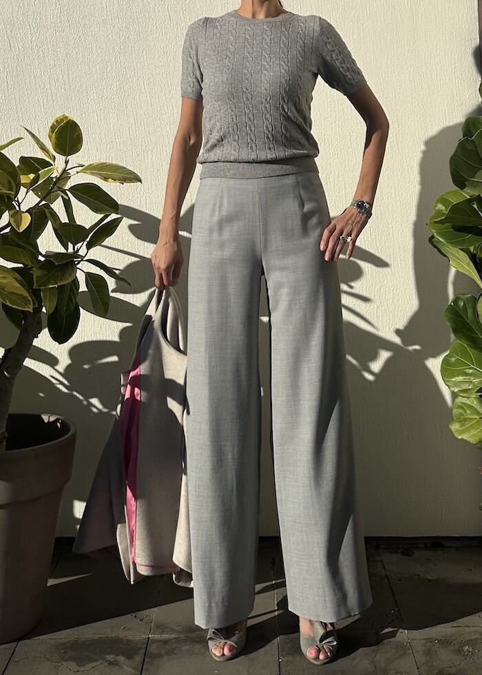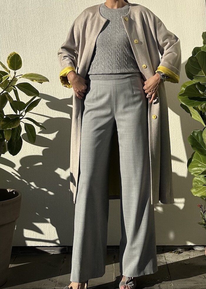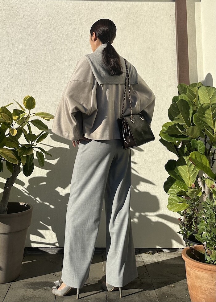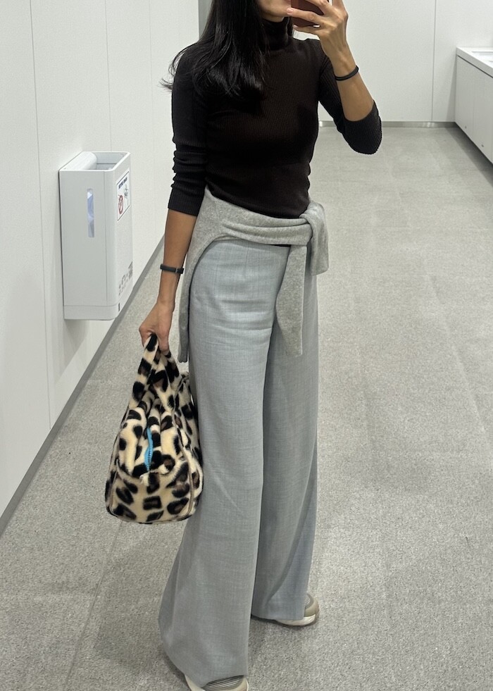 밝은 그레이 색상이라 다양한 옷들도 코디 가능한 기본색 울팬츠입니다.