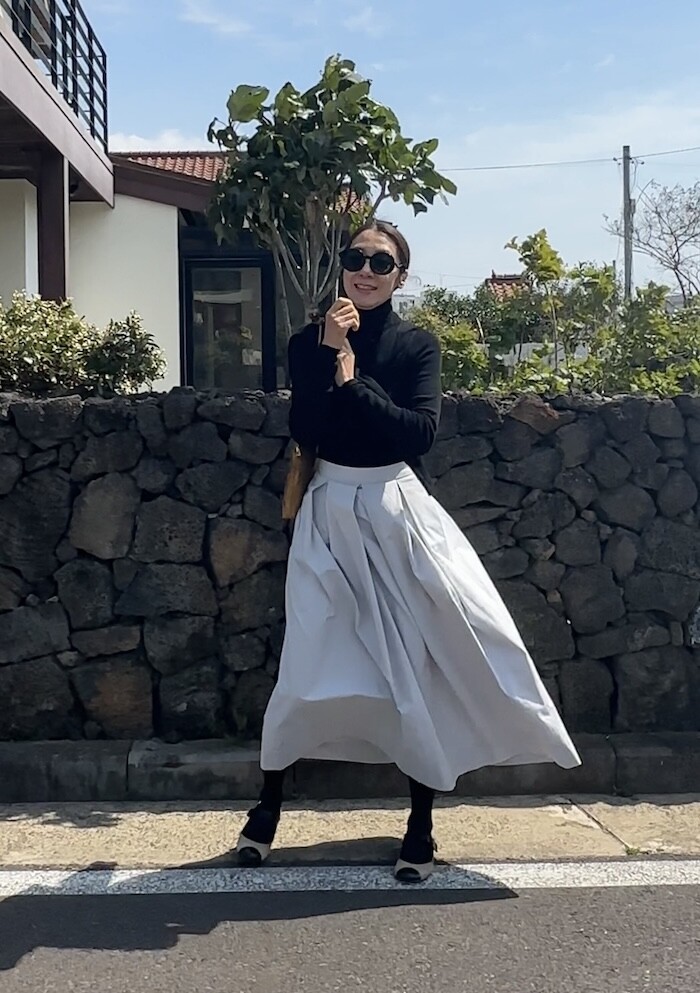 6-주름은 허리부터 퍼지는 주름이 많은 스타일입니다.