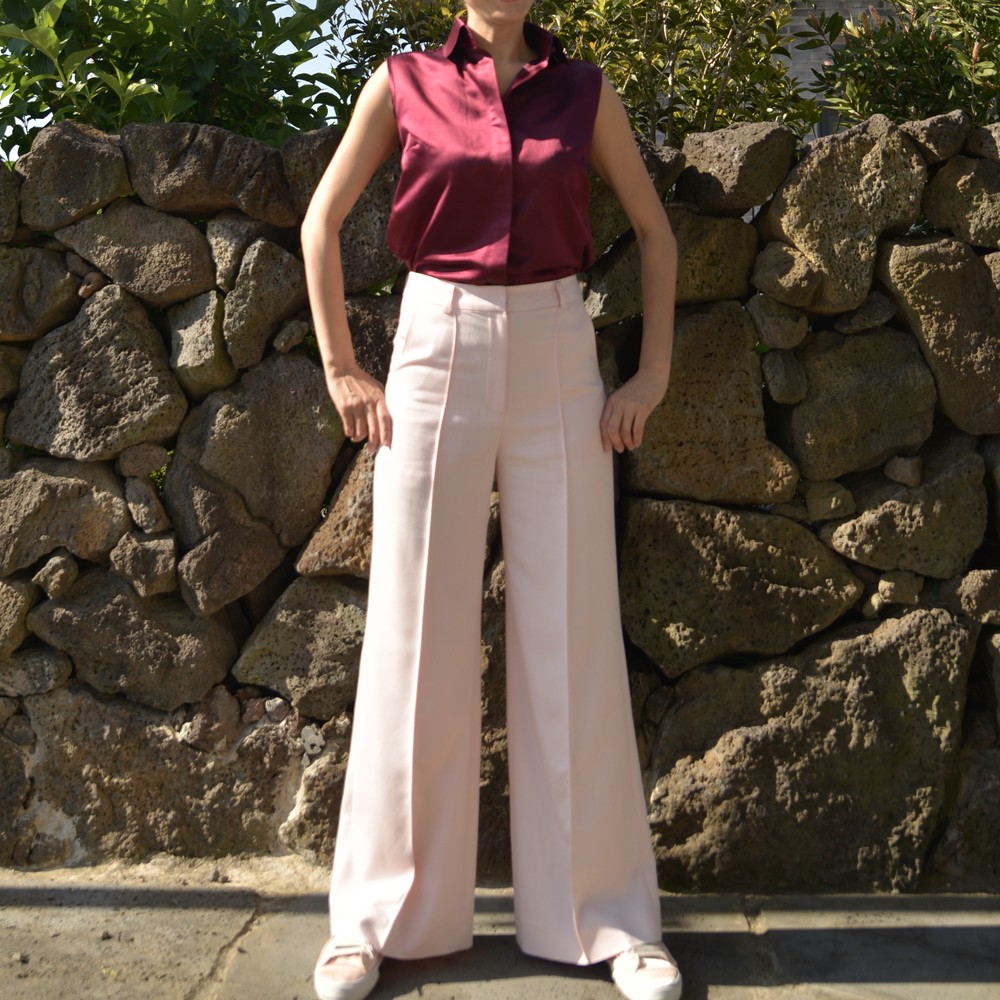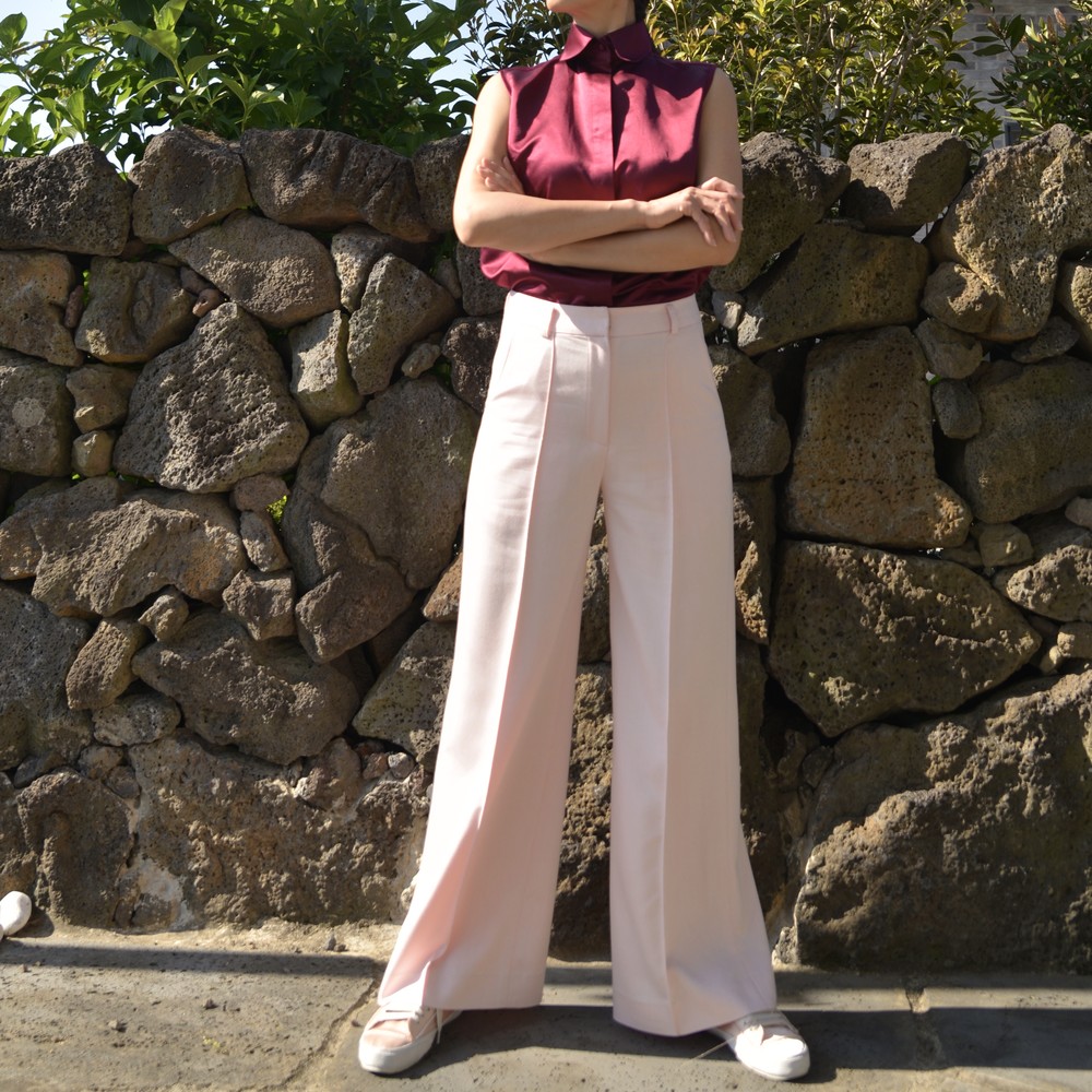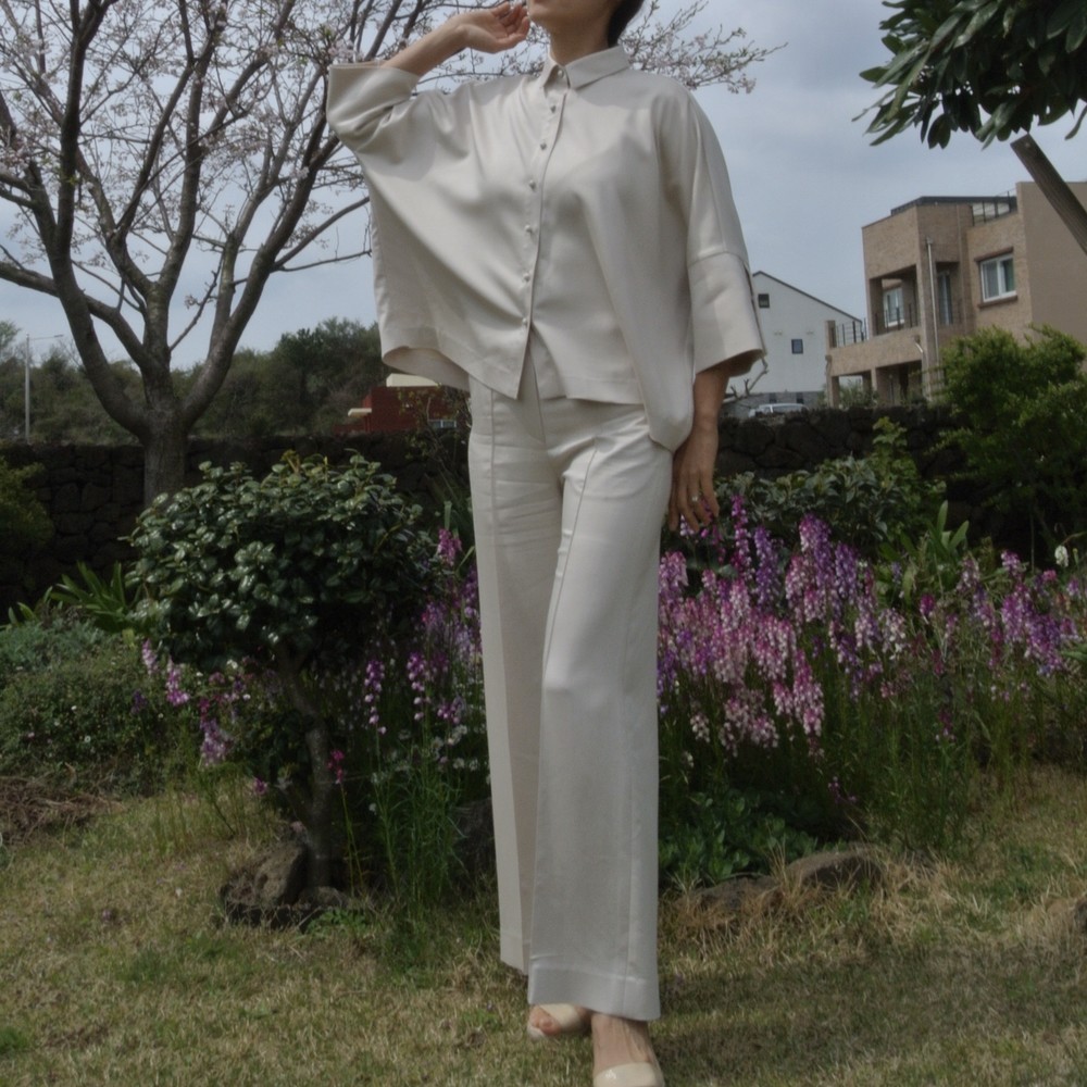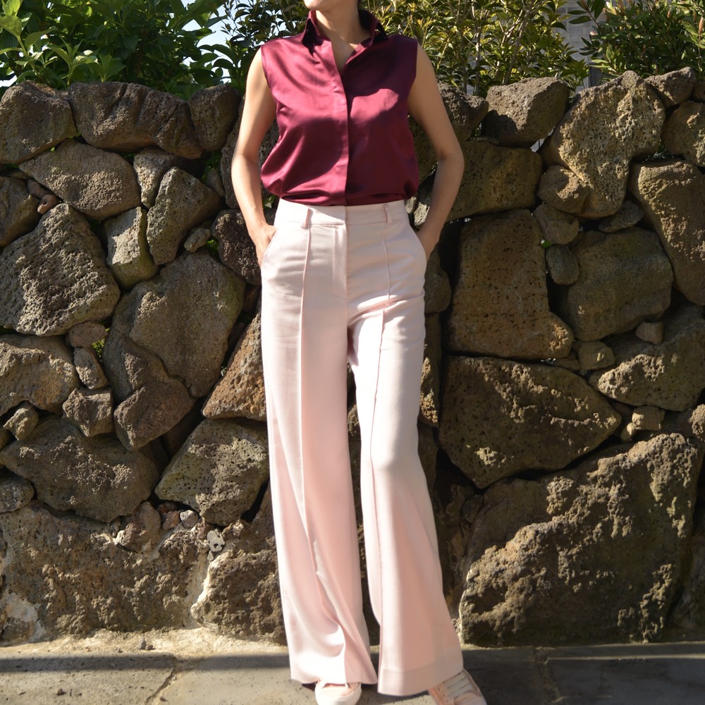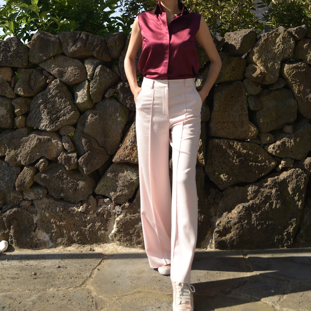 광택 없는 실크 느낌의 레이온 소재 팬츠입니다.