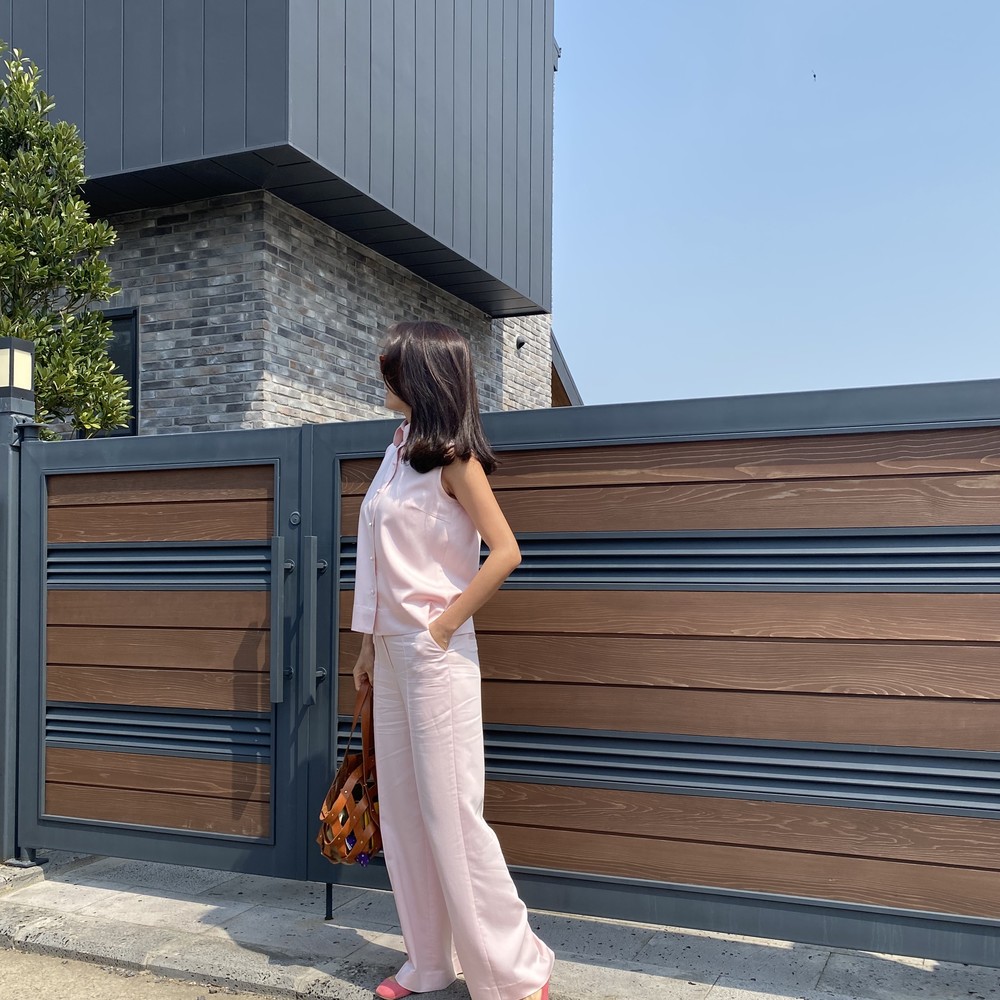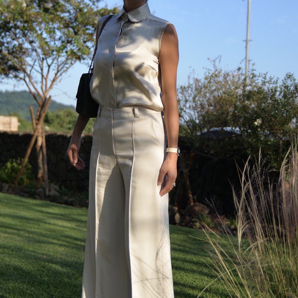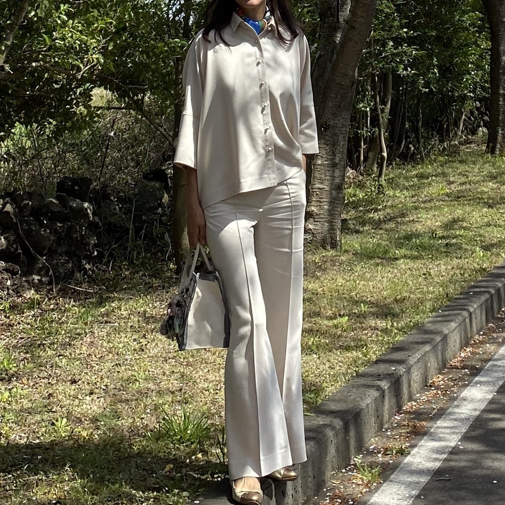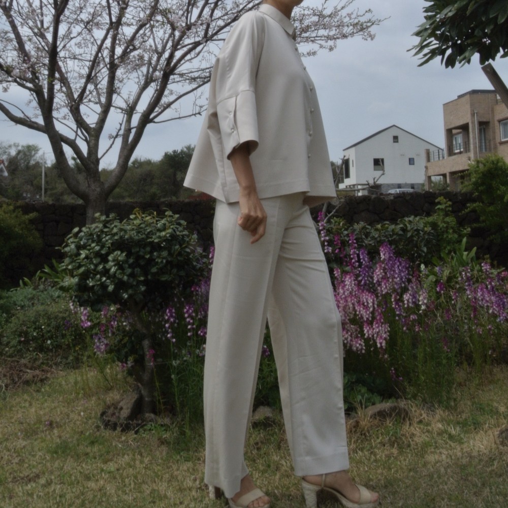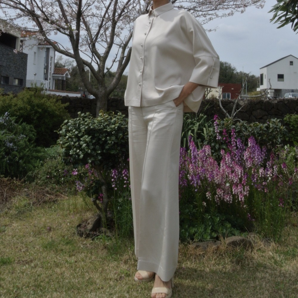 광택 없는 실크 느낌의 레이온 소재 팬츠입니다.