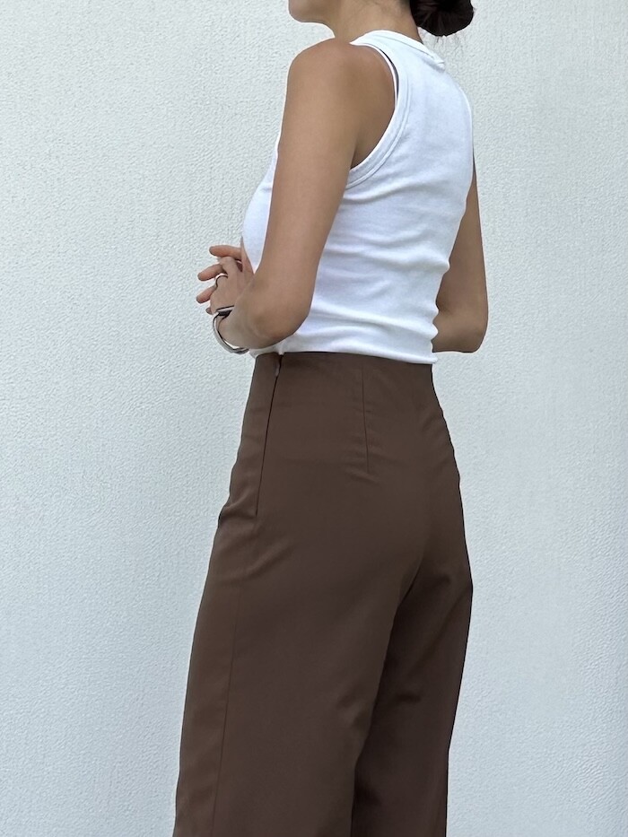 앞주름이 있고 힢쪽에 날개 장식이있어 힢을 보완해 주는 디자인 바지입니다.
