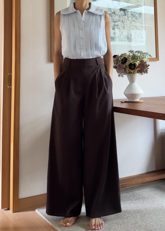 온라인으로 사이즈 체크가 어려운 스타일이라 원하시면 입어 보실 수 있는 샘플 팬츠 보내드립니다.