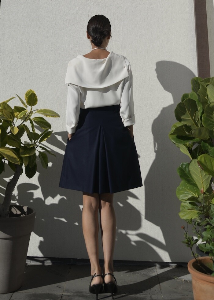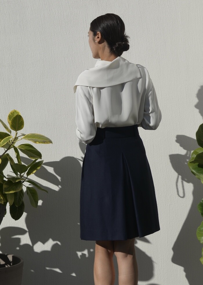 카라가 뒤로 넘어가는 세일러 블라우스입니다.