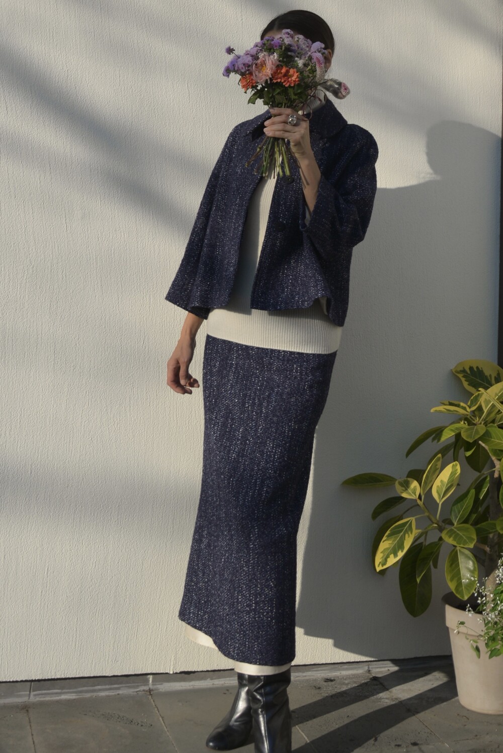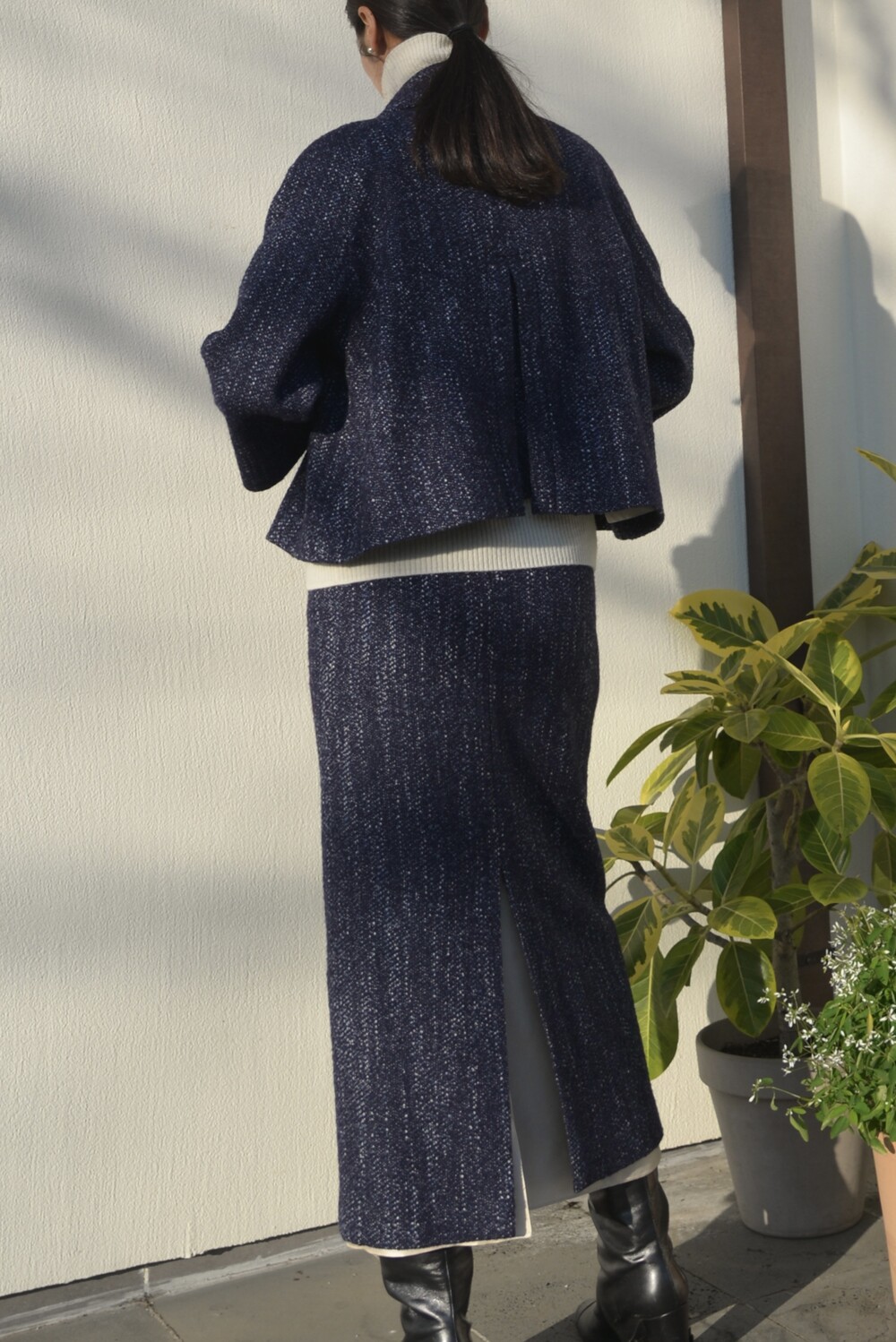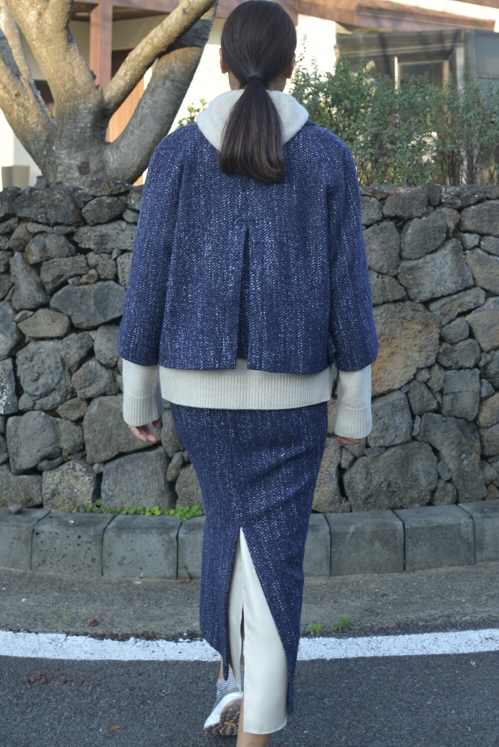 트위드 원단의 매력을 살려 복잡한 디자인이 배제된 클래식하고 심플한 스타일입니다.