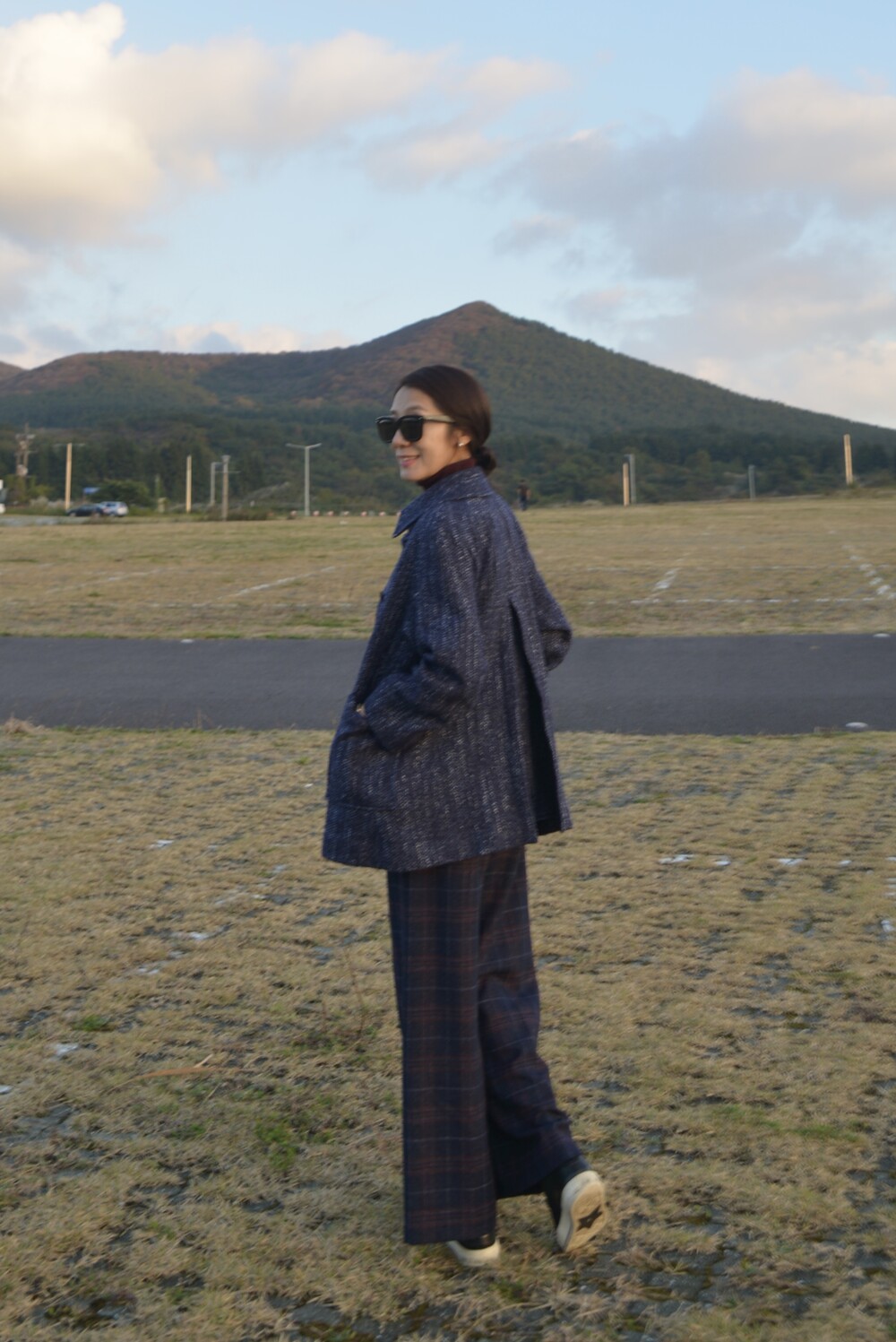 되도록 겨울 옷은 캐시미어와 울 소재위주로 옷을 만들고 있지만 이번 트위드는 색상과 질감으로 약간의 합성 섬유와 보송보송하고 부드러운 느낌을 살려주는 알파카 섬유가 섞인 혼방 원단입니다.