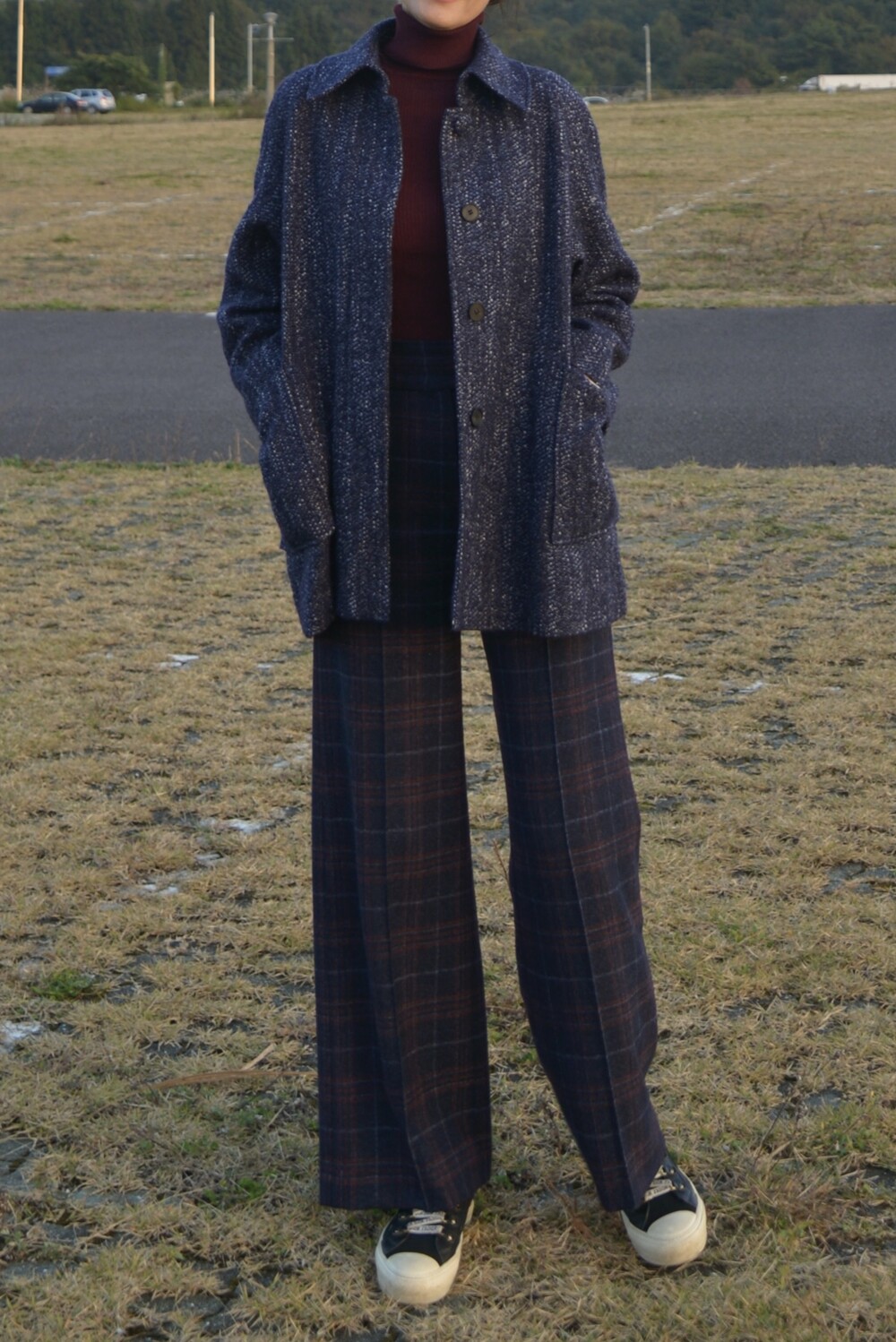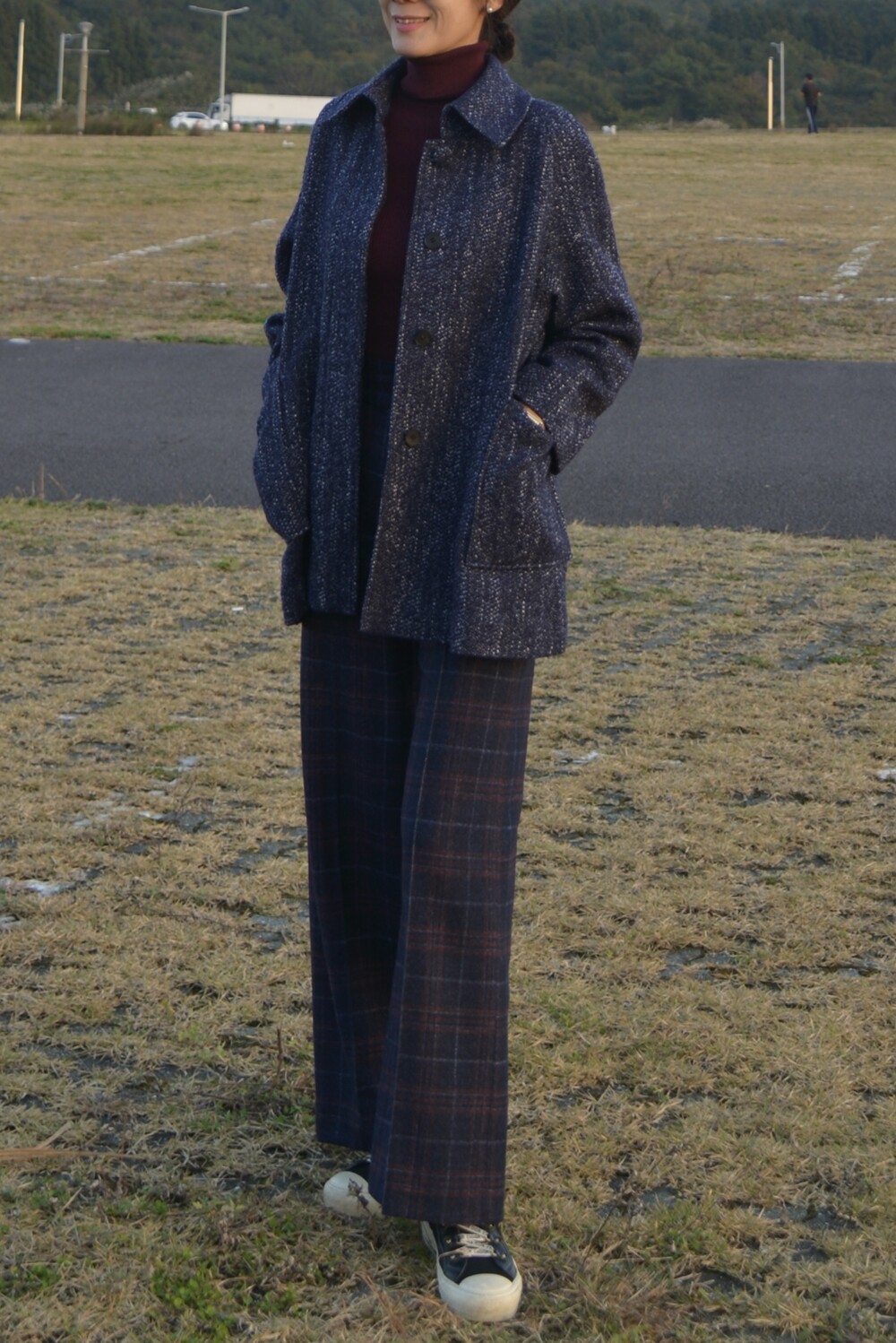 보온성 있는 적당한 두께감과 톰톰하게 견고한 울 트위드 원단입니다.